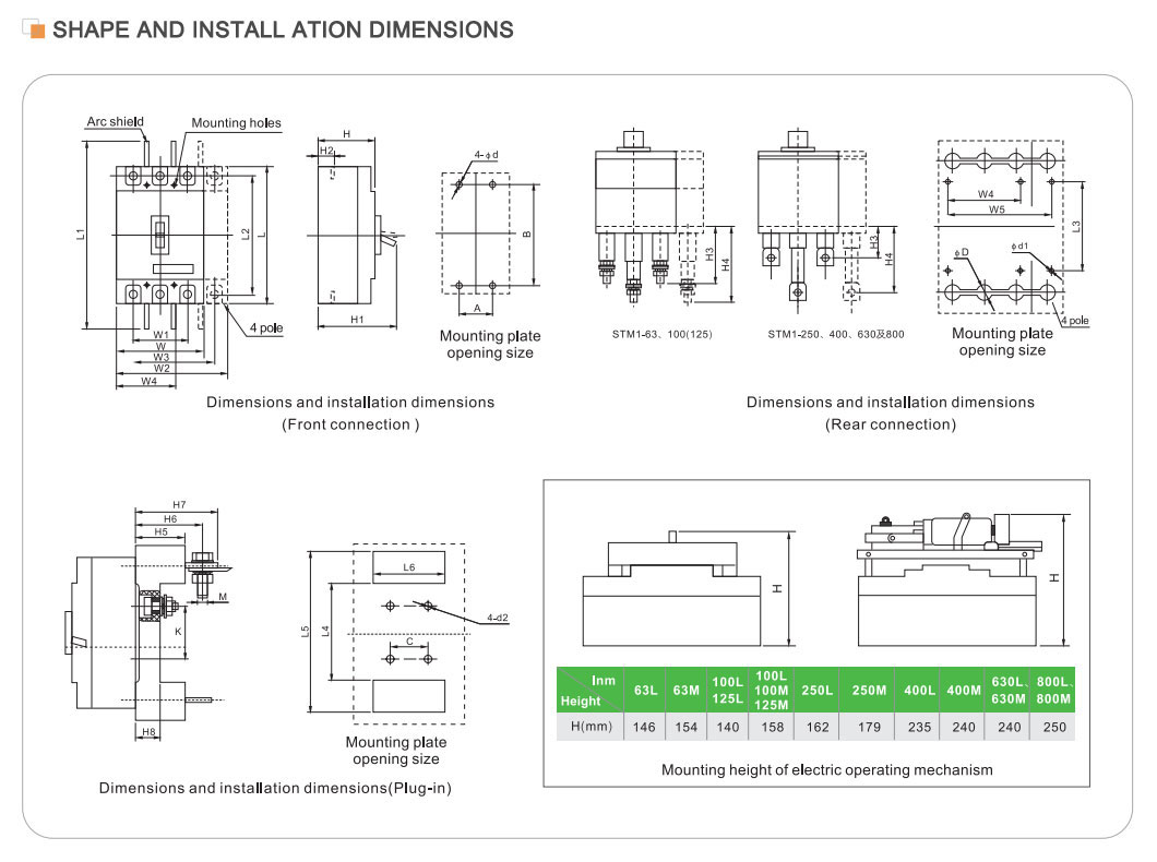 | គំរូ | STM1-125 | STM1-250 | STM1-400 | STM1-630 | STM1-800 | STM1-1250 | |||||||||||||